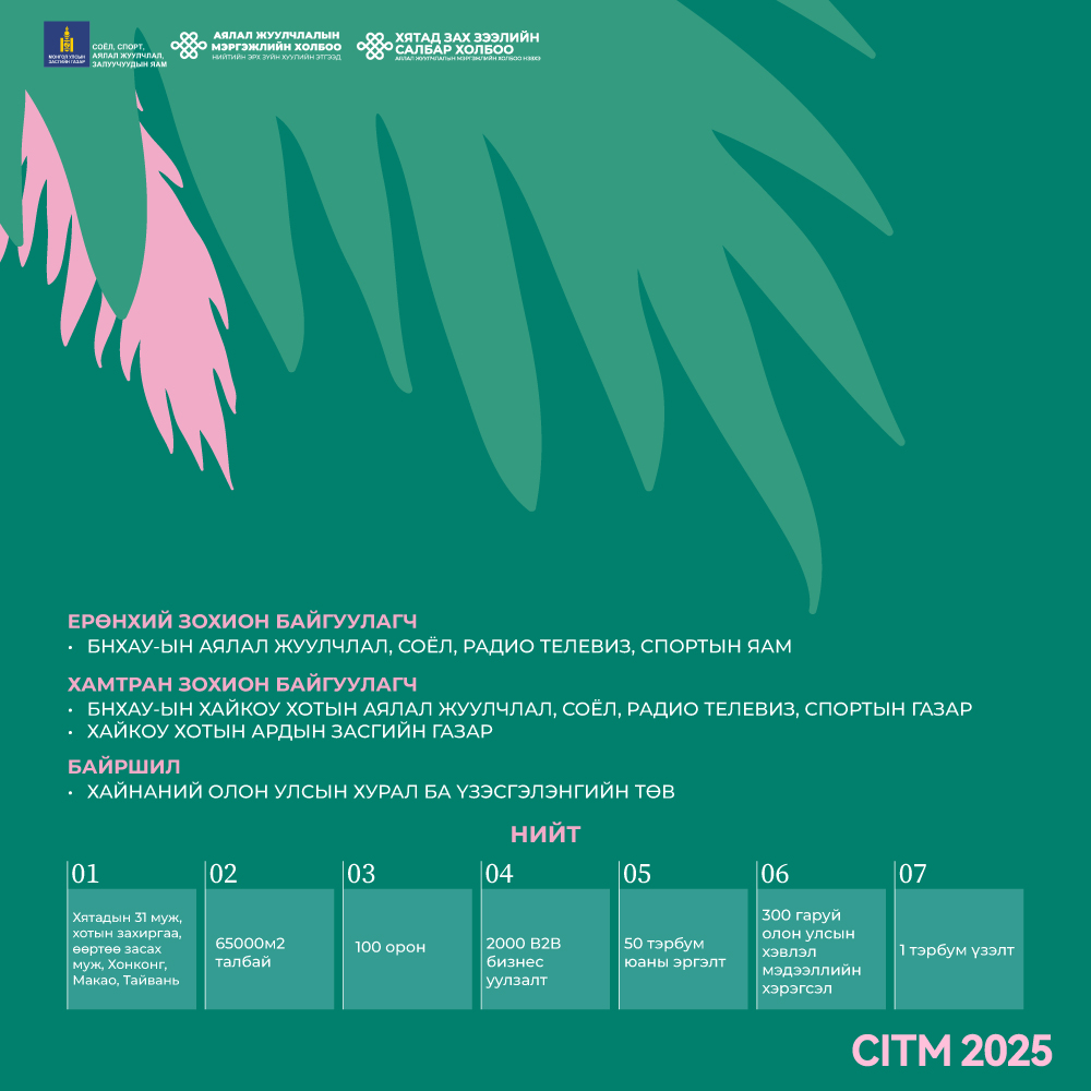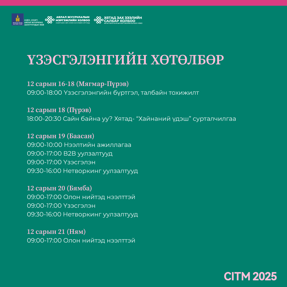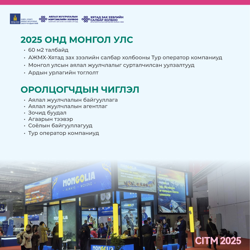 2025 оны 12 дугаар сарын 19-21ны хооронд Монгол Улсаас аялал жуулчлалын 12 байгууллага, урлаг, соёлын байгууллага болон ССАЖЗЯ, АЖМХ-НЭЗХЭ улсаа сурталчлан оролцохоор төлөвлөж байна.