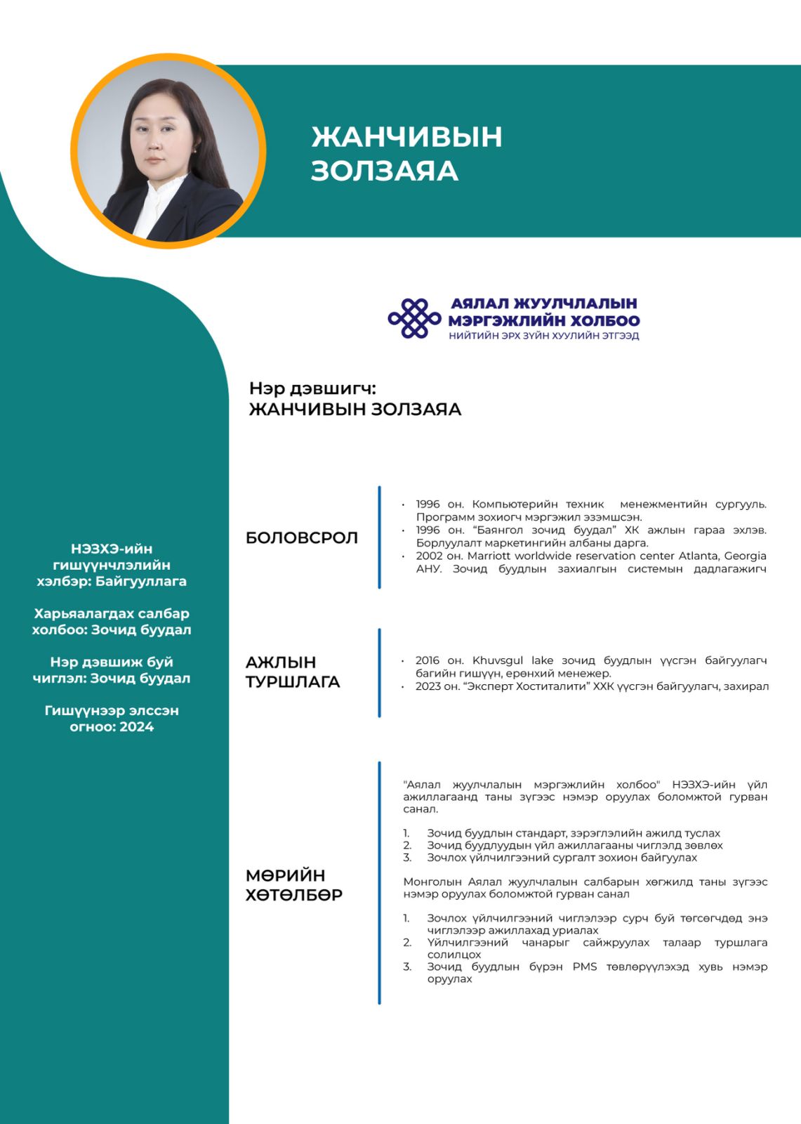 АЯЛАЛ ЖУУЛЧЛАЛЫН ХООЛ ҮЙЛДВЭРЛЭЛ, ЗООГИЙН ГАЗРЫН ТӨЛӨӨЛЛӨӨР УДИРДАХ ЗӨВЛӨЛИЙН СОНГУУЛЬД НЭР ДЭВШИГЧ НАРЫН АНКЕТ