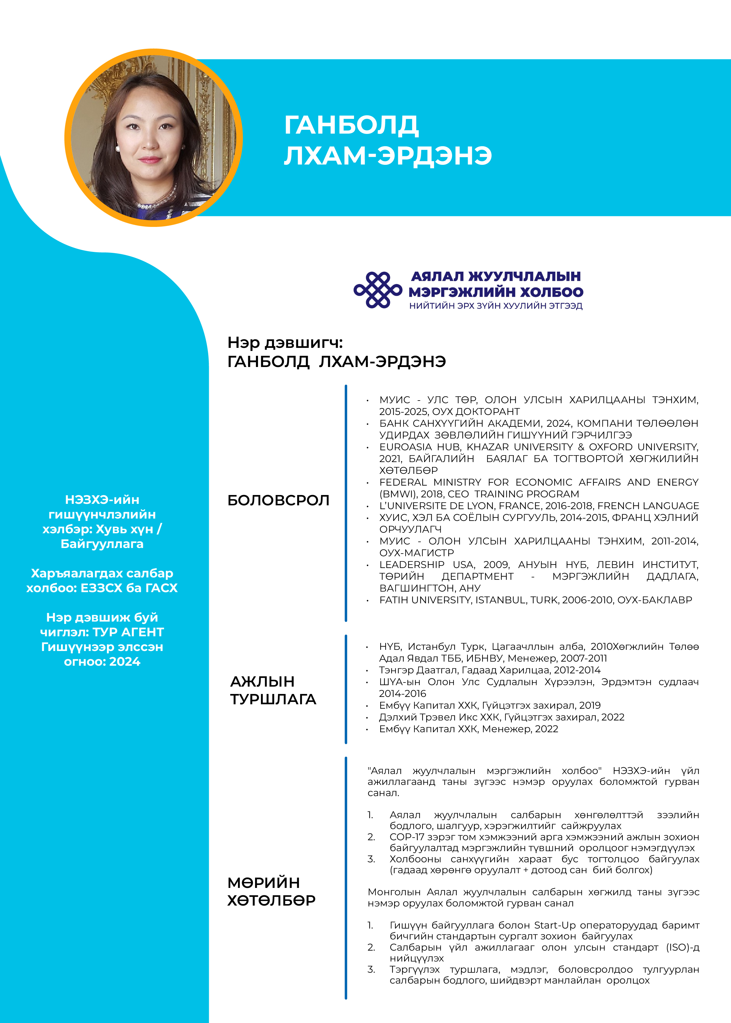 АЯЛЛЫН АГЕНТЫН ТӨЛӨӨЛЛӨӨР УДИРДАХ ЗӨВЛӨЛИЙН СОНГУУЛЬД НЭР ДЭВШИГЧ НАРЫН АНКЕТ