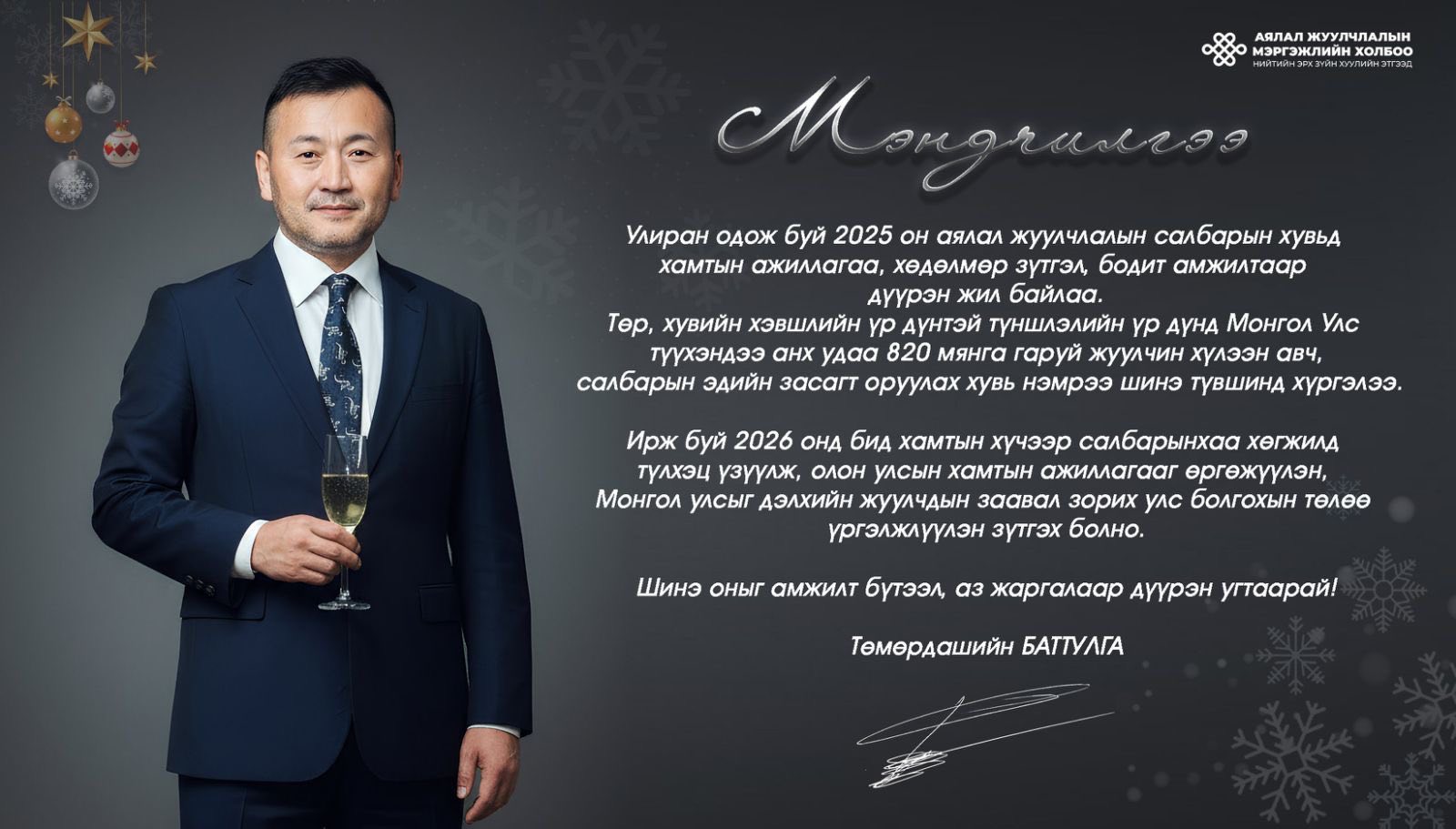 АЯЛАЛ ЖУУЛЧЛАЛЫН САЛБАРЫНХАНДАА ШИНЭ ЖИЛИЙН МЭНД ХҮРГЭЕ