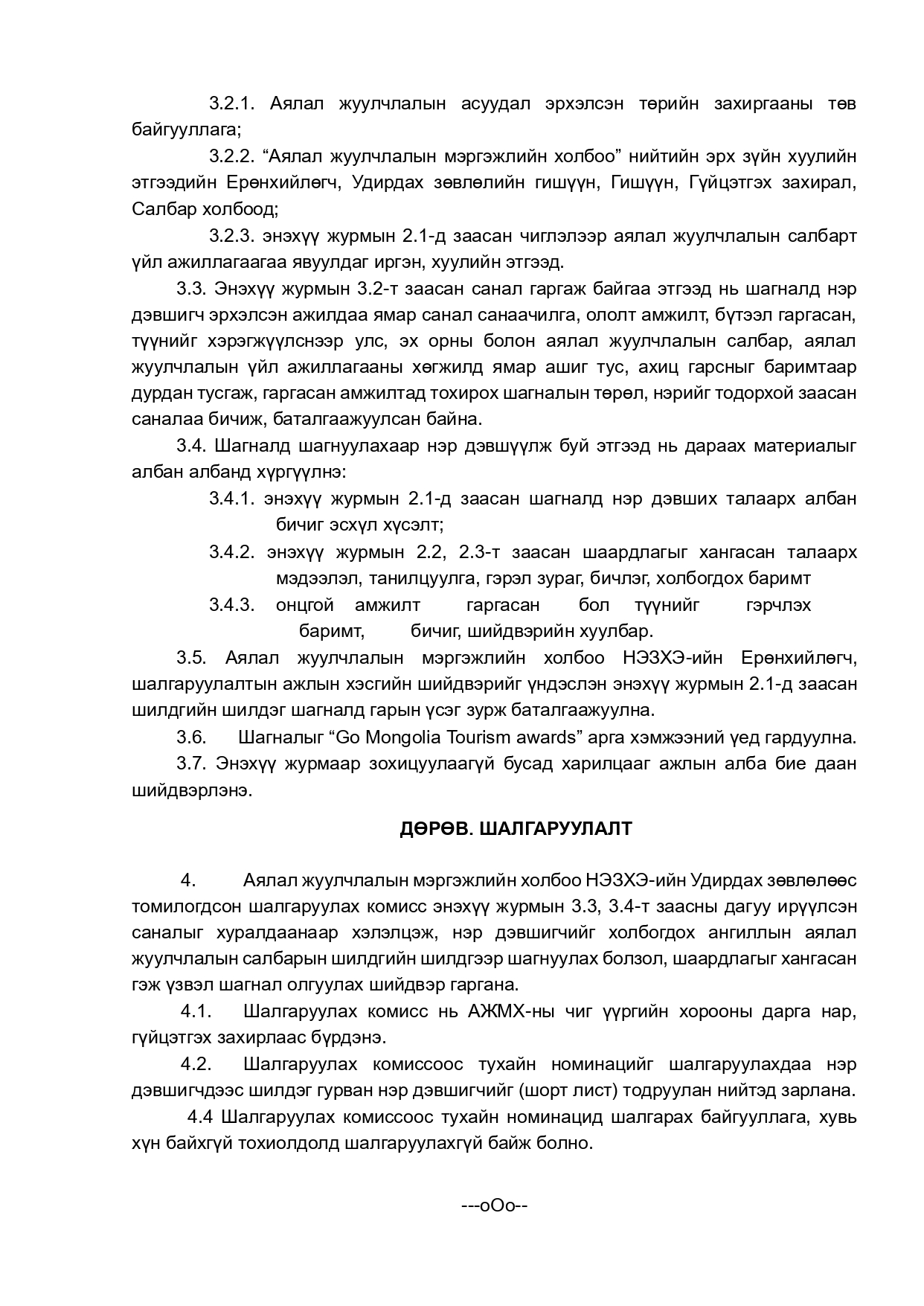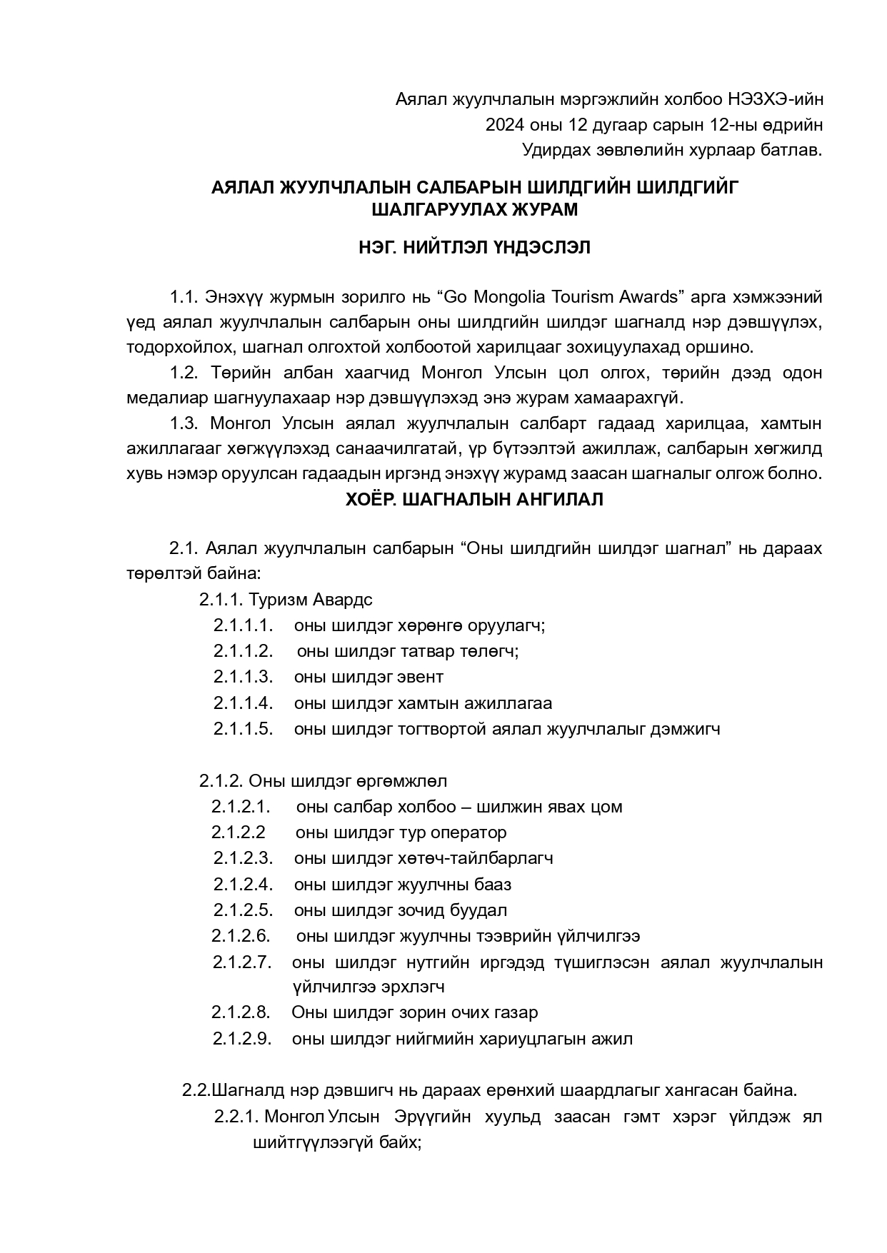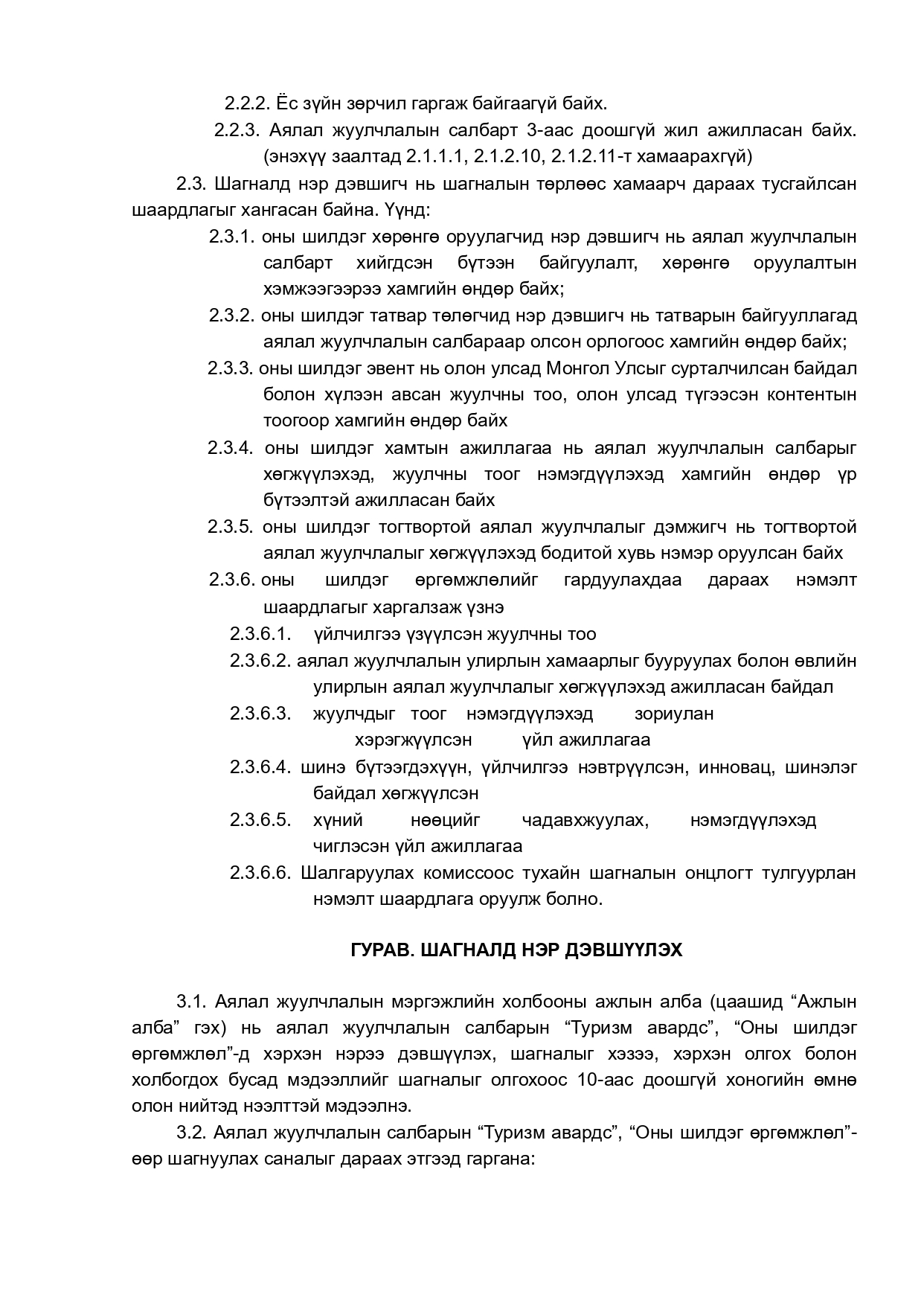 АЯЛАЛ ЖУУЛЧЛАЛЫН САЛБАРЫН ШИЛДГИЙГ ТОДРУУЛАХ ШАГНАЛЫН ЖУРАМ
